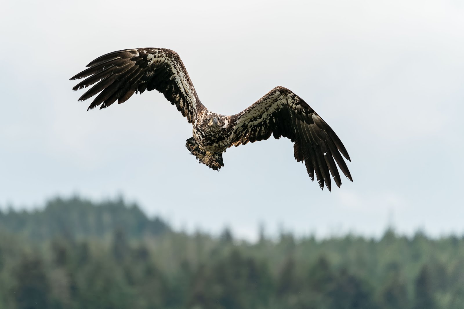 The next day was Stephanie's father's birthday, and so we spent the day doing an excursion from the port of Juneau. First, we were taken to the local salmon hatchery. I went straight up the ramp, ahead of the group, to where I saw an eagle perched. Just beyond this younger eagle were a few dozen eagles off on an island. I stayed on the deck for the next thirty minutes, watching the eagles and taking pictures.