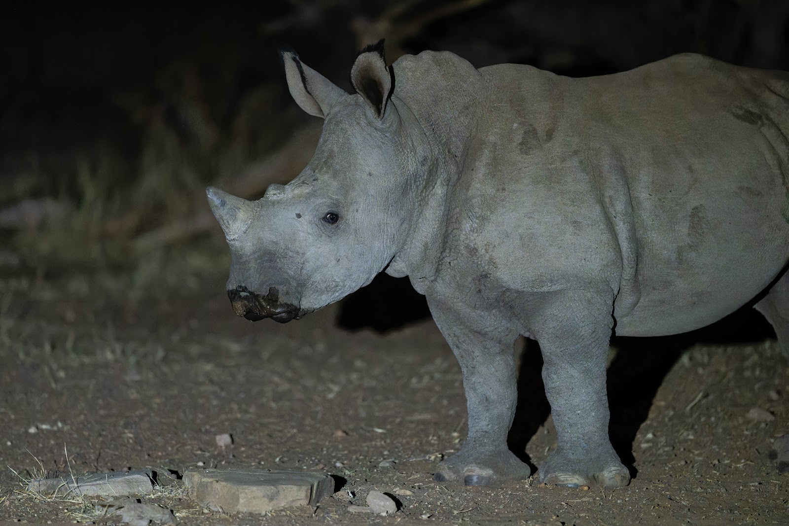 He drove back slowly. At another waterhole, we found a rhino and its baby. We returned to the lodge at 9:00. I grabbed my jacket and stood by the fire in the dining room. When we sat down for dinner, we were informed that they had not received the request for a vegan meal. The waiter went into the kitchen and came back and suggested cauliflower as an entree. I requested to see the chef. I suggested noodles and vegetables to the chef. We both ate the same meal.